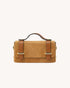 Borsetta scamosciata con rifiniture in pelle, unisco scomparto e tracolla a catena.