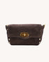 Borsa a spalla in vera pelle, con tracolla lunga a catena + manico a catena corto.